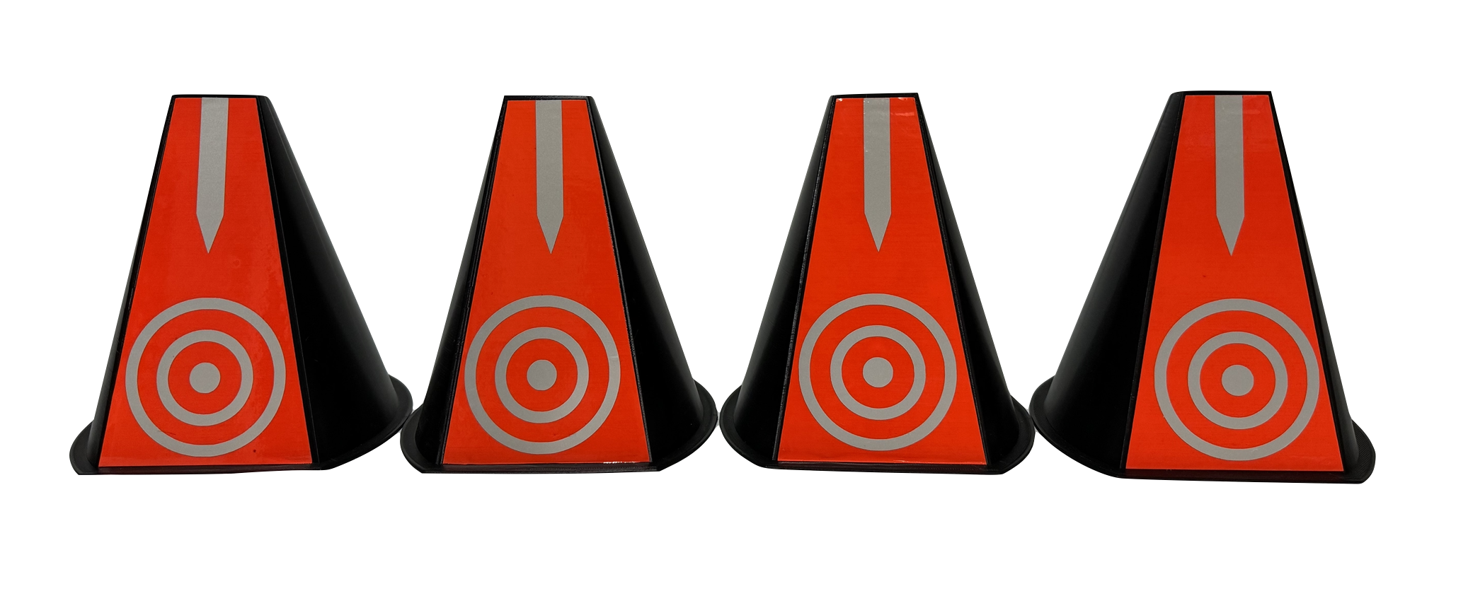 Reflective: For those poor lighting experiences often found in outdoor rehearsals and to aid performers in competitive settings, the StageCone comes with highly reflective Prismatic vinyl accents.